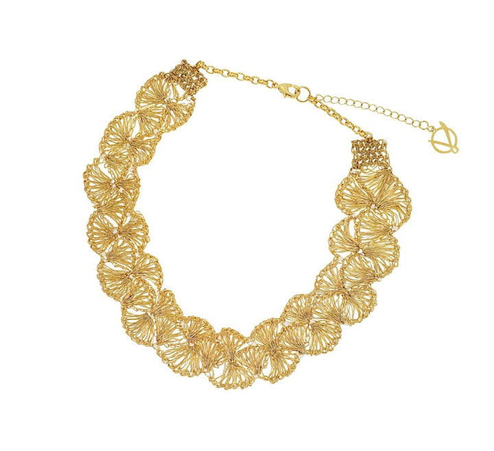 This Women's Shells Necklace in Gold by Lavish Alice captures the enchanting allure of the ocean with its delicate, hand-crocheted wire detailing. Made from yellow gold and adorned with crystals and glass beads, this piece adds an organic and bohemian touch to your collection. Perfect for a standout look, it embodies both elegance and nature.