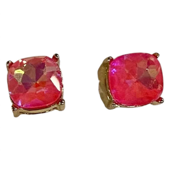 Women's Colorful Cushion Cut Gemstone Stud Post Earrings In Pink