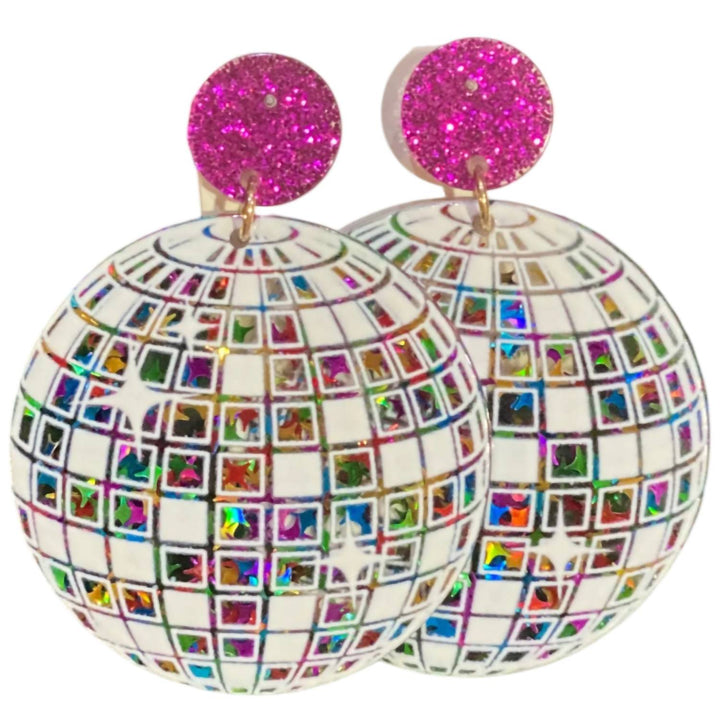 Women's Sparkle And Groove Disco Ball Earrings In Pink