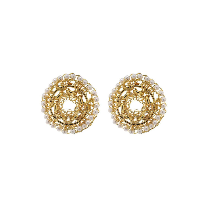 Women's Medallion Flux Post Earrings In Gold & Pearl