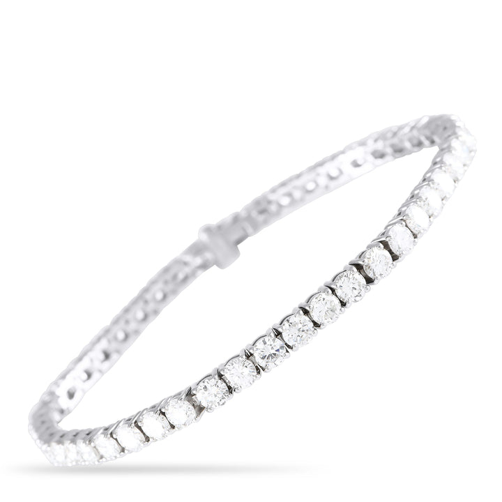 This LB Exclusive 14K White Gold 10.43ct Diamond Tennis Bracelet is an exceptional piece crafted with 10.43 carats of diamonds. Set in luxurious 14k white gold, it’s perfect for special occasions.