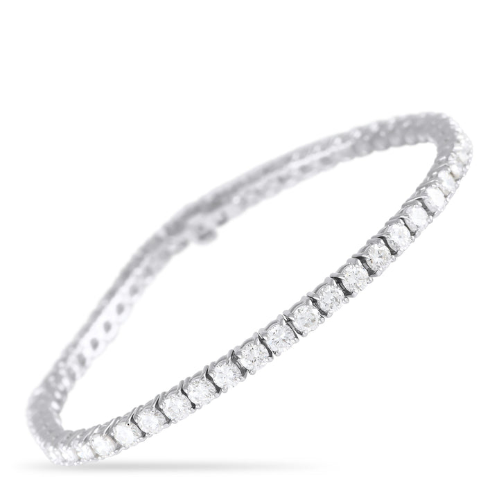 This LB Exclusive 14K White Gold 6.82ct Diamond Tennis Bracelet is a sophisticated, sparkling addition to your jewelry collection. With 6.82 carats of diamonds set in 14K white gold, this bracelet features a sleek design that adds elegance to any ensemble. The bracelet measures 7.25 inches and includes a secure tab insert clasp closure.