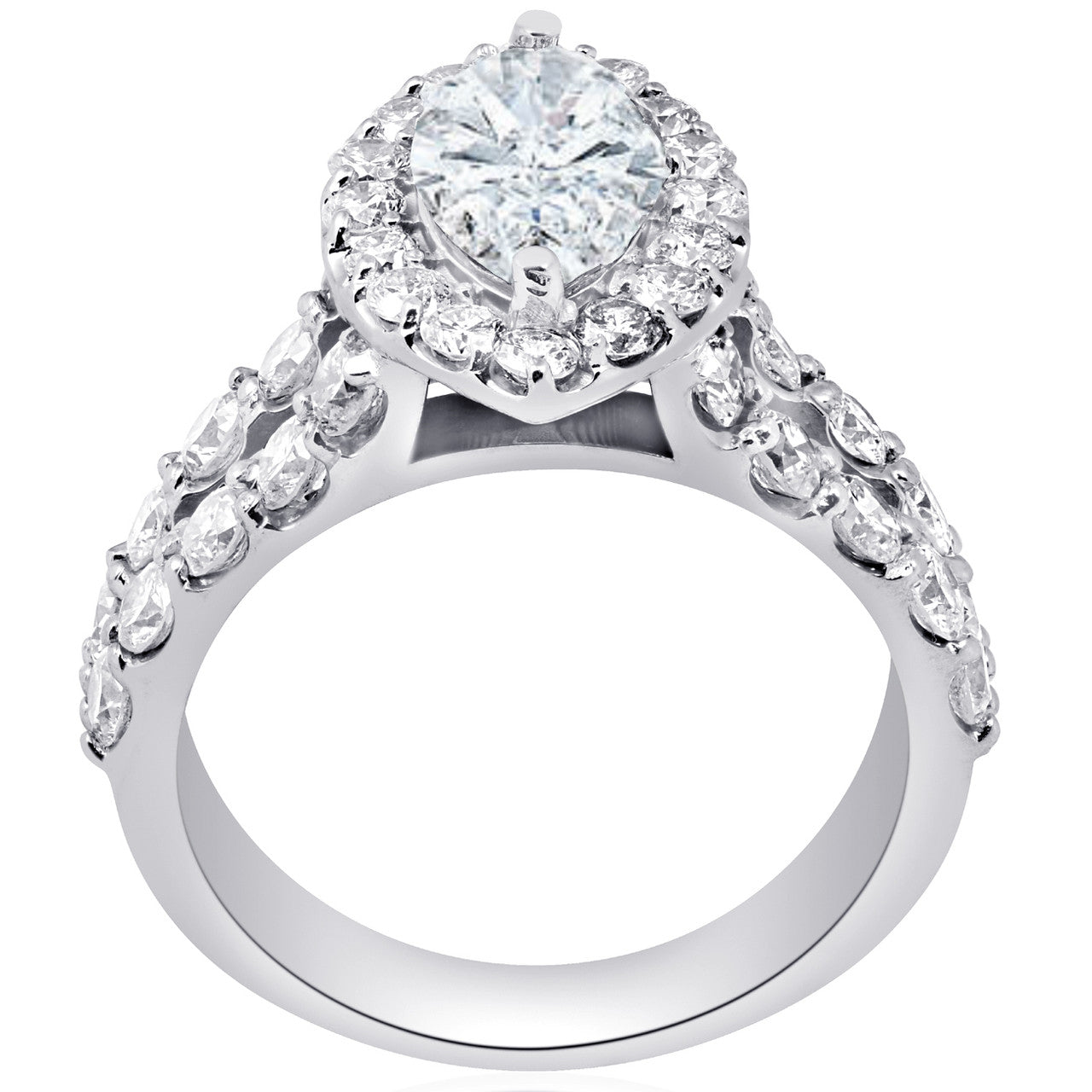 2 1/2ct Marquise Diamond Halo Lab Grown Engagement Ring 14k White Gold