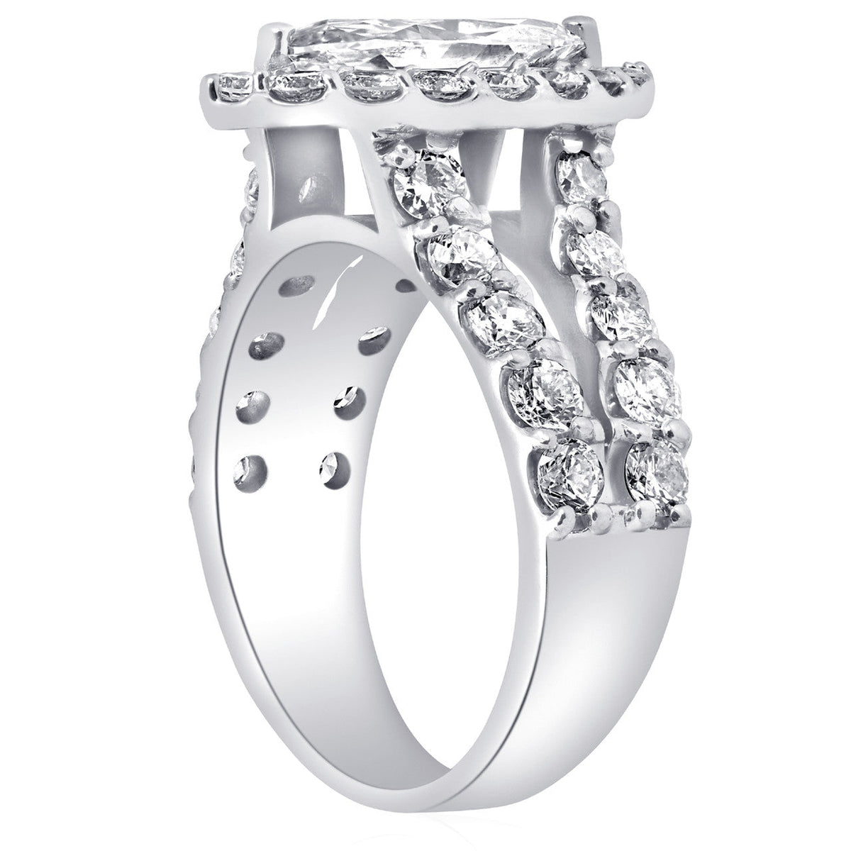 This 2 1/2ct Marquise Diamond Halo Lab Grown Engagement Ring in 14k White Gold by Pompeii3 is a high-quality women’s engagement ring that features a genuine 1-carat marquise center stone, surrounded by lab-grown round-cut diamonds. The diamonds are set in common prongs, wrapping around the marquise stone and extending up on either side. This exquisite ring is crafted in solid 14k white gold, making it the perfect symbol of everlasting love.