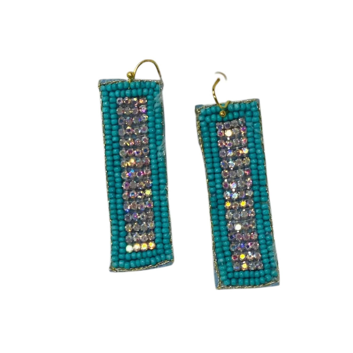 Rectangle Rhinestone Seed Bead Earrings In Turquoise