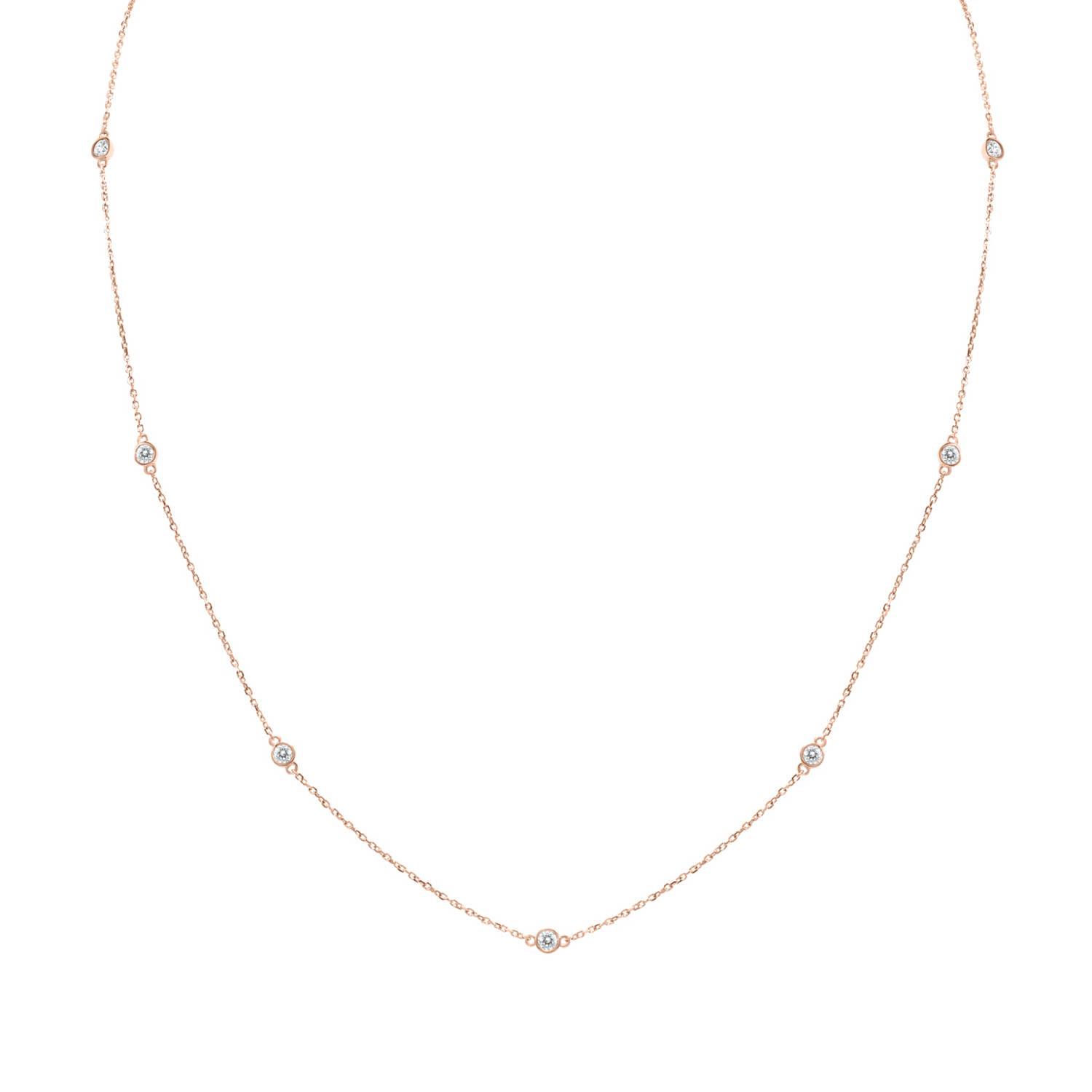 Crafted in 14K rose gold. Diamonds: Round diamonds, total carat weight 0.25, Very Good cut, Prong setting. Length: 18 inches.