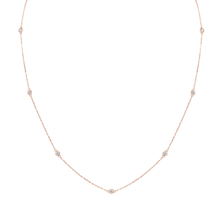 This 14K Rose Gold 1/4ct TW Diamond By The Yard 18' Necklace by SSELECTS is a timeless piece that features 0.25 carats of diamonds set in a delicate 14K rose gold chain. The diamonds sparkle beautifully along the chain, making this necklace a perfect addition to any jewelry collection.