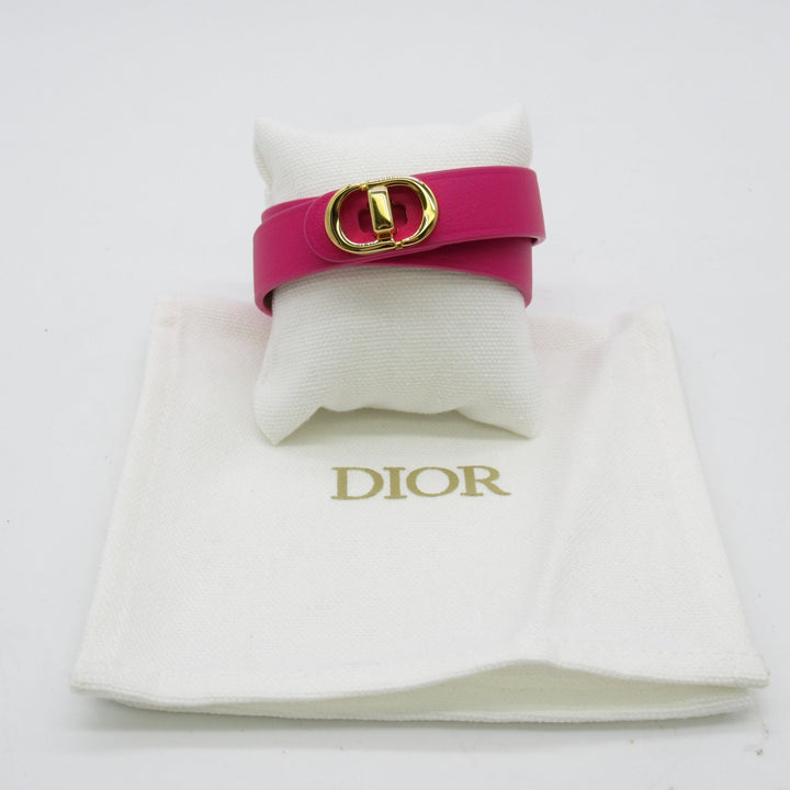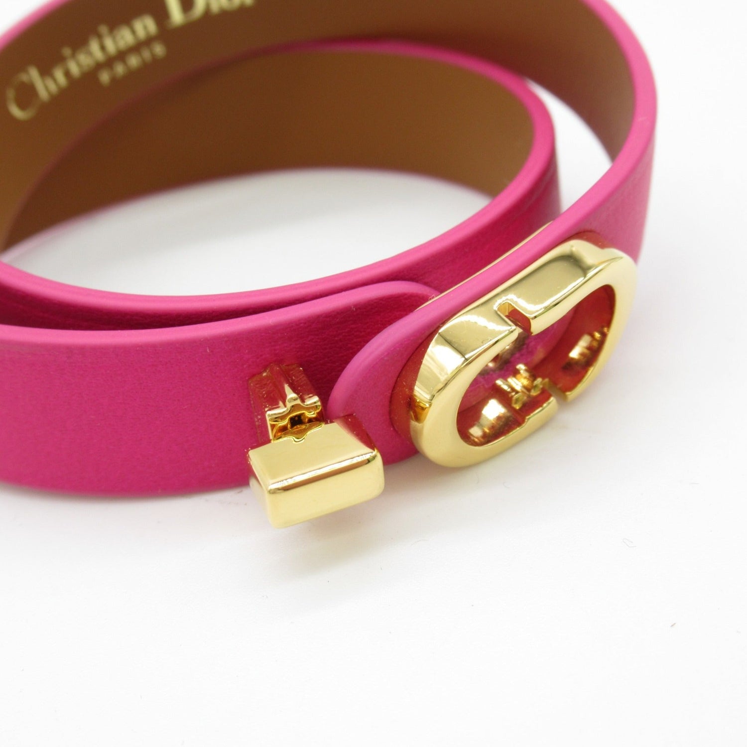This Christian Dior Leather Charm Bracelet features a chic pink leather band with a motif charm. Ideal for adding a touch of luxury and style to any outfit, this bracelet is perfect for both casual and formal events.