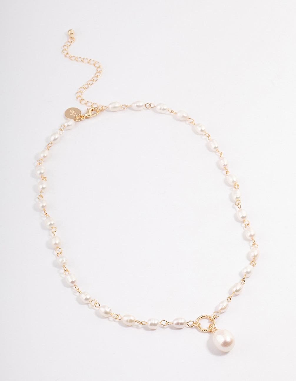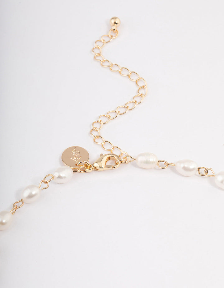 Lovisa - Gold Plated Timeless Freshwater Pearl Station Drop Necklace