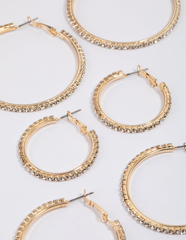 Lovisa - Gold Plated CZ Crystal Hoop Earrings - Mixed Sizes