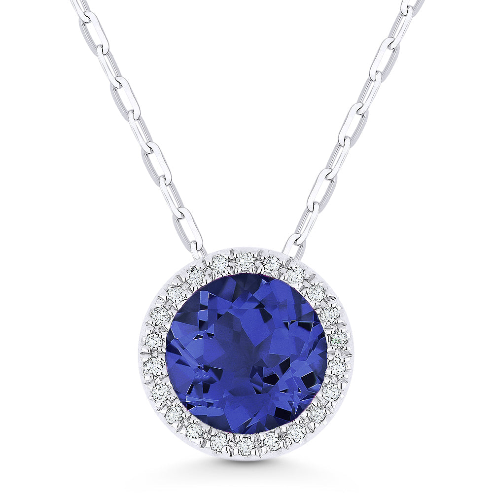 1.66ct Created Sapphire 16' pendant Necklace In 14K White Gold
