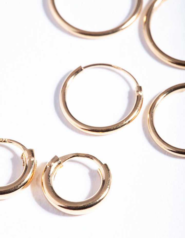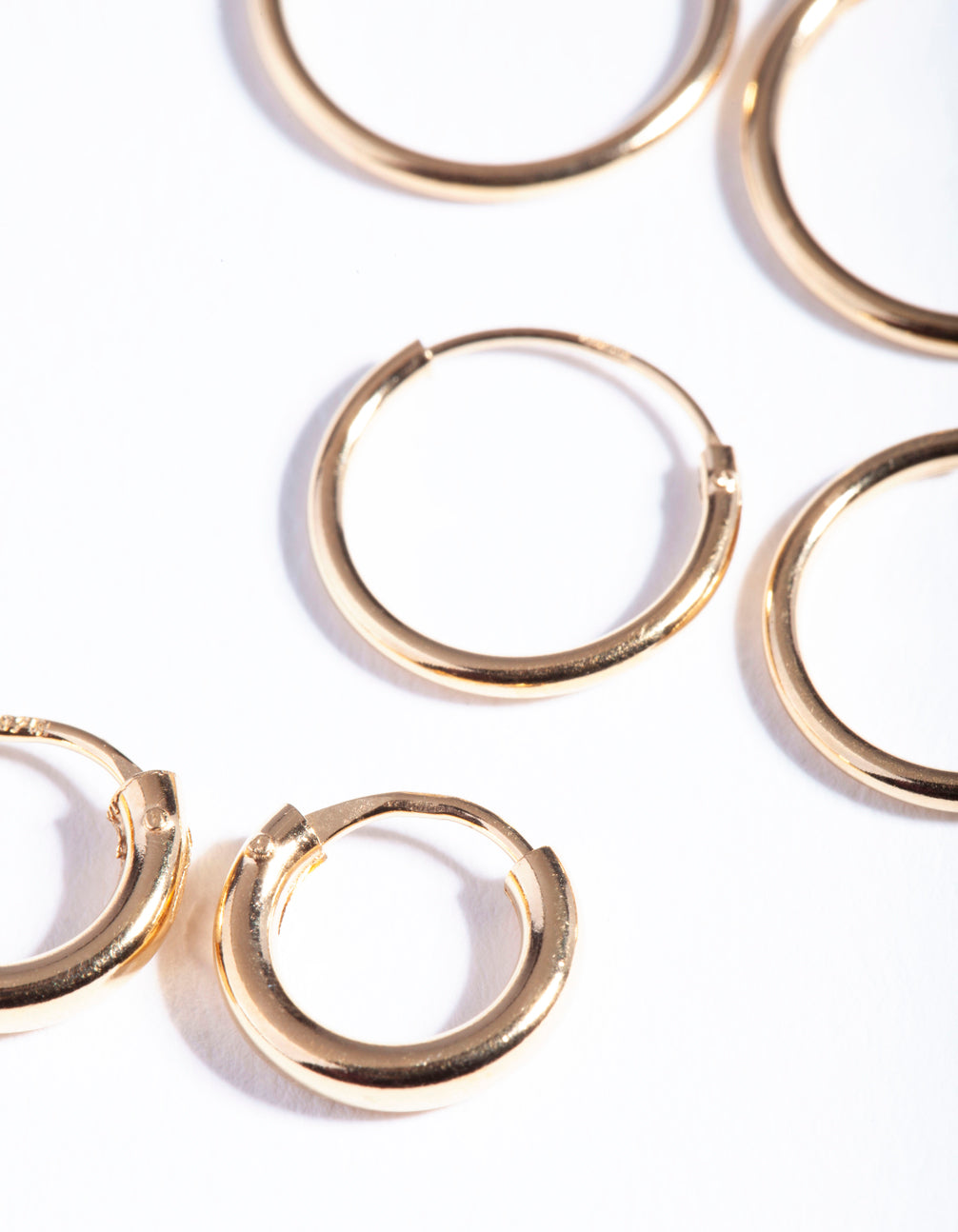 Gold-plated sterling silver. Set includes multiple hoop styles in varying sizes.