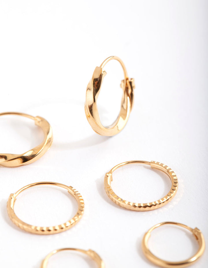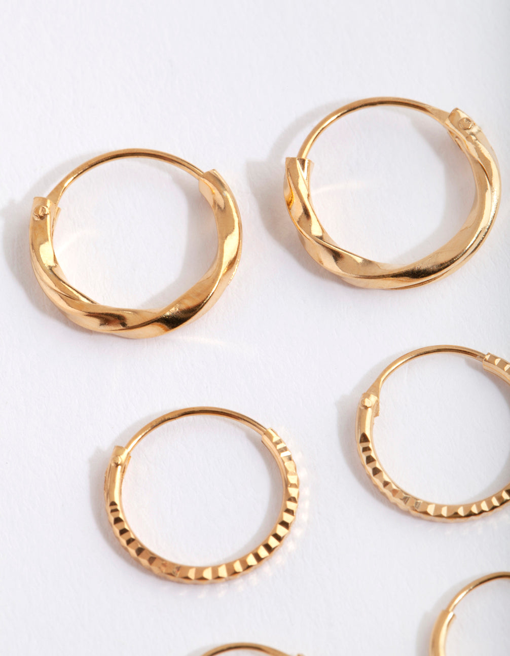 Lovisa - Gold Plated Sterling Silver Graduating Textured Hoop Pack