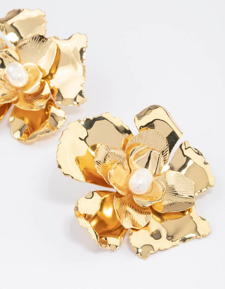 Lovisa - Gold Plated Large Flower Freshwater Pearl Stud Earrings