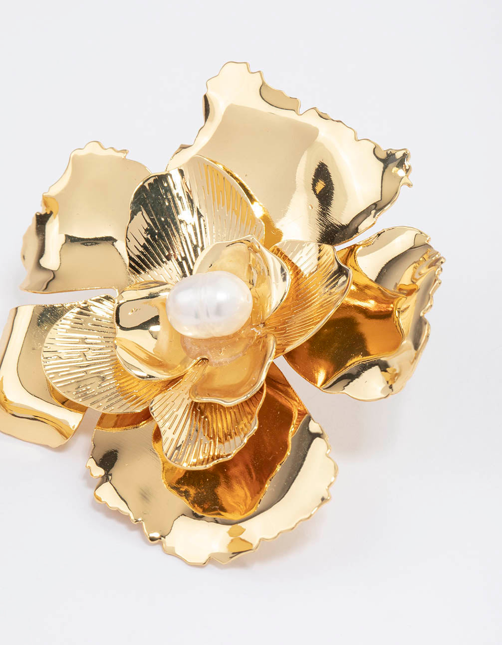 Gold-plated with large flower design and freshwater pearl.