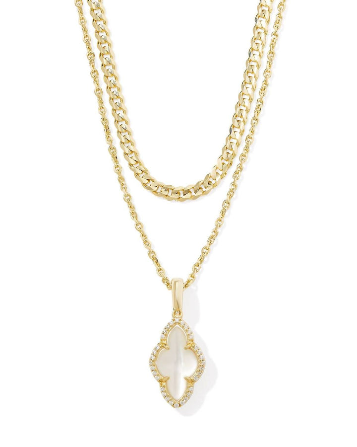 The Abbie Pave Frame Multi Strand Necklace in Ivory Mop by Kendra Scott is a refined and luxurious multi-strand necklace. With its iconic shape and pave crystal frame, it sparkles with unforgettable elegance, perfect for any occasion.