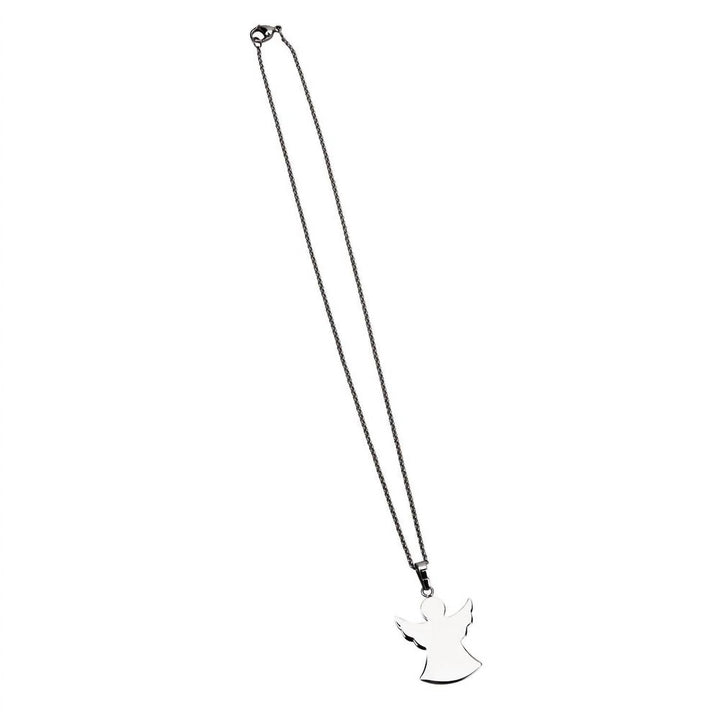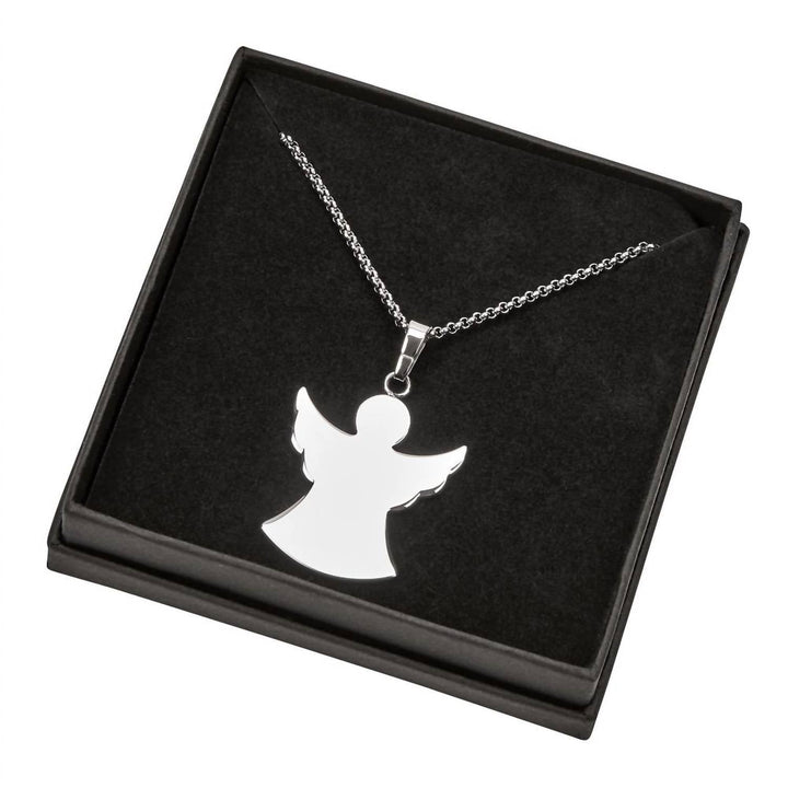 This Stainless Steel Angel Necklace in Silver by Creative Gifts International is a symbol of elegance and spirituality. The angel-shaped pendant adds a graceful touch to any outfit, making it a perfect gift or personal treasure. The necklace comes in a sophisticated black presentation box, making it a great option for special occasions.