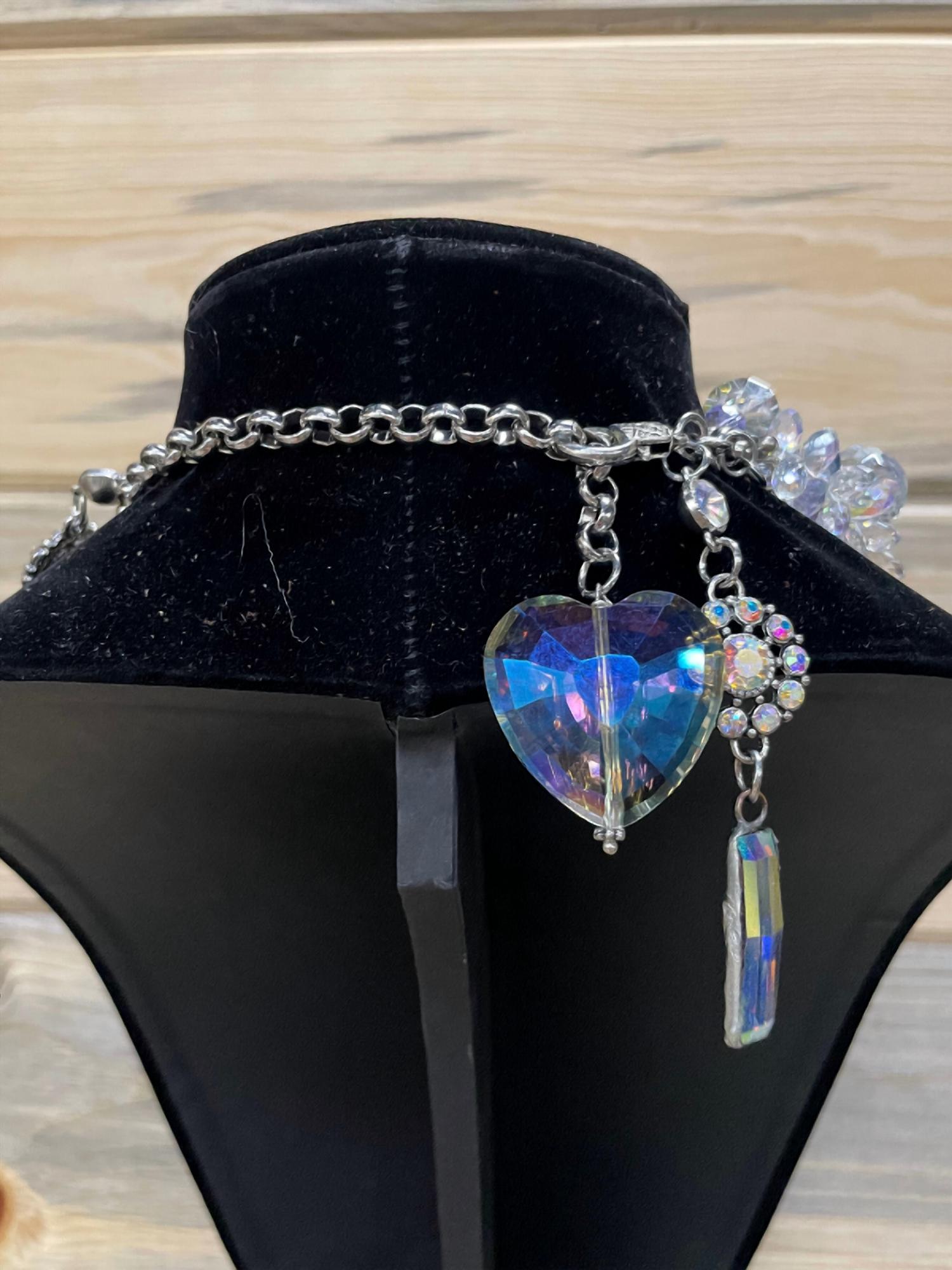 This Many Crystals Necklace in Purple by Art By Amy Labbe is an eye-catching and unique piece, designed to bring a burst of color and sparkle to any ensemble. With its combination of crystals in vibrant purple hues, this necklace adds a playful and elegant touch to your jewelry collection.