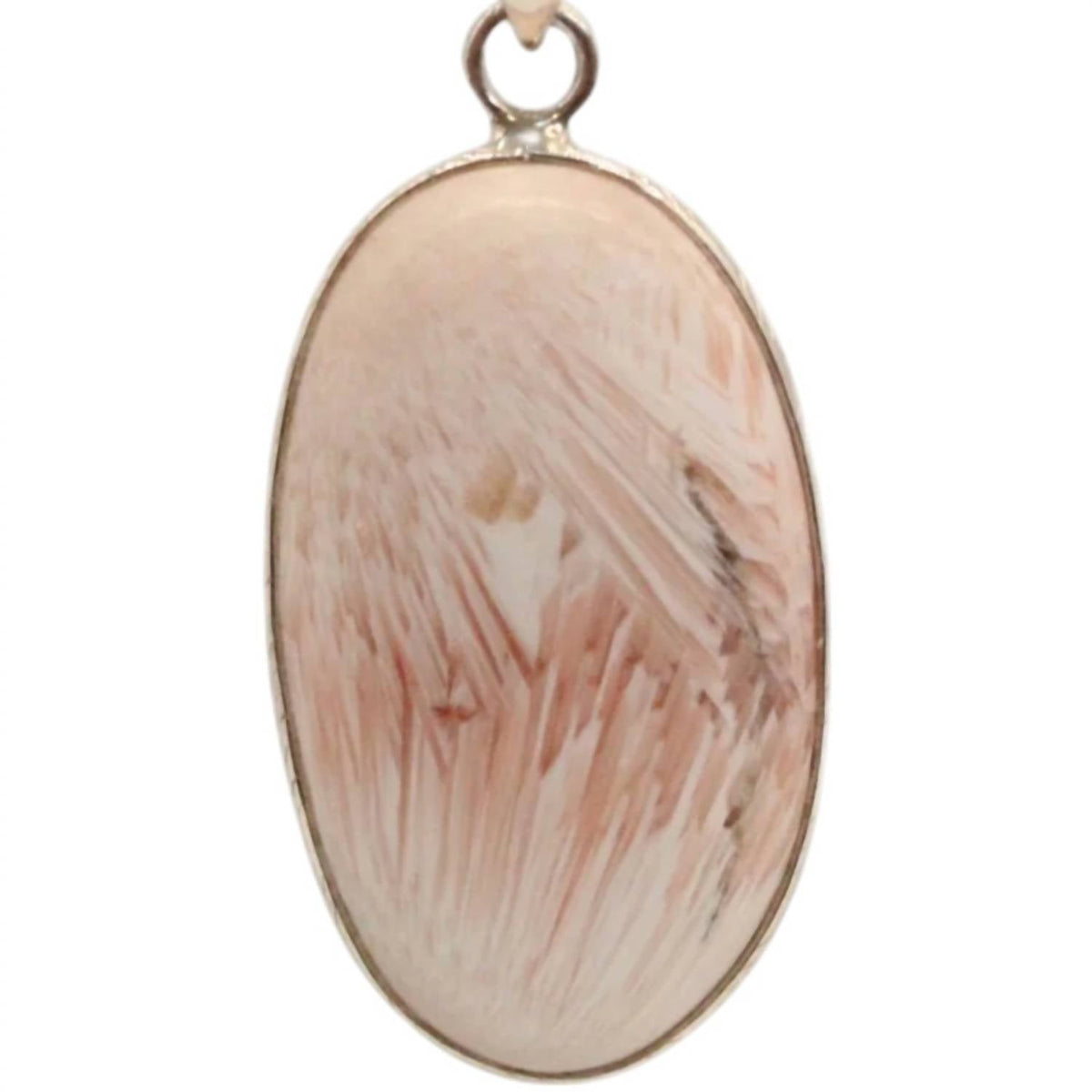 This Women's Scolecite Pendant and Necklace in Orange by Desiregem is a striking and unique piece that features an oval-shaped orange scolecite gemstone. The 18-inch sterling silver chain adds a touch of elegance, making it a versatile addition to any jewelry collection.