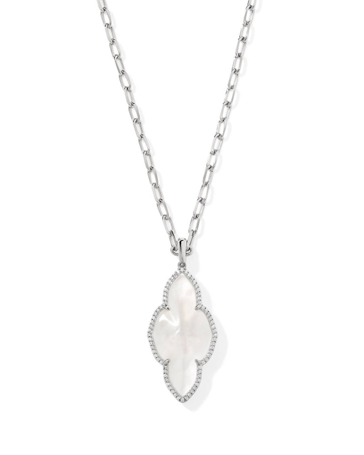 Abbie Pave Frame Large Long Pendant Necklace In Ivory Mop