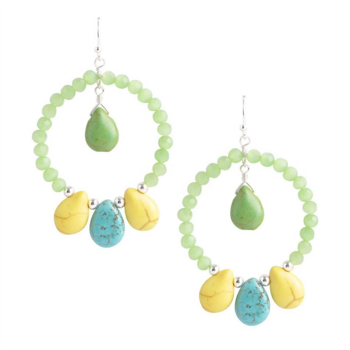 These Women's Drop Earrings in Lime by Barse feature vibrant lime turquoise and magnesite gemstones set in sterling silver. These handcrafted 2.5-inch earrings add a pop of color and make a bold statement with their bright design.