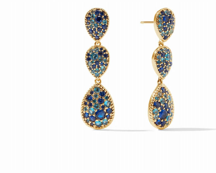 These Luna Teardrop Tier Earrings in Gold by Julie Vos are a statement piece that captures attention with their graceful design. The teardrop tiers create a stunning cascade effect, catching the light with every movement. Ideal for adding a touch of drama to any outfit, these earrings exude elegance and sophistication. Perfect for an evening out or a special occasion.