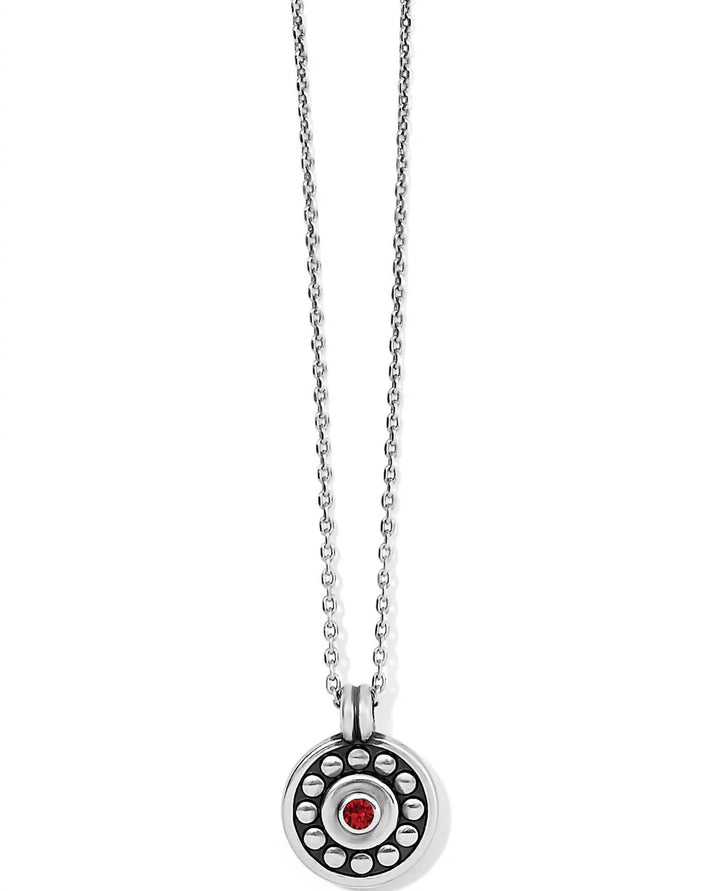 This Women's Pebble Dot Medali Petite Reversible Necklace in January-Siam by Brighton offers versatility and vibrant color. With its Bali-inspired design, the necklace features fine quality crystals in a silver-plated finish, making it a perfect statement piece. Wear it on its own or layer it with other necklaces. The adjustable length and reversible pendant design make it easy to customize for different looks, adding a personal touch to your style.