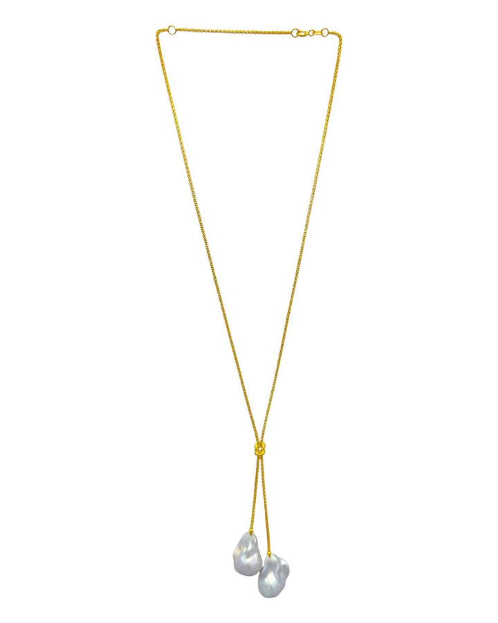Women's Gold Chain W/ 2 White Wild Pearls Necklace
