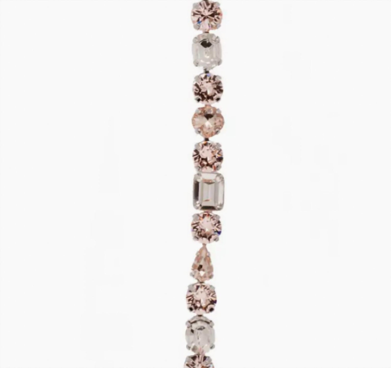 Made with emerald, pear, round, and cushion-cut crystals. Set in palladium finish.