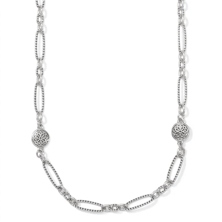 This Women’s Ferrara Link Long Necklace in Silver by Brighton features a silver-plated finish and is designed to gracefully enhance any ensemble. The 20-inch necklace is perfect for layering or wearing alone, offering both sophistication and versatility.