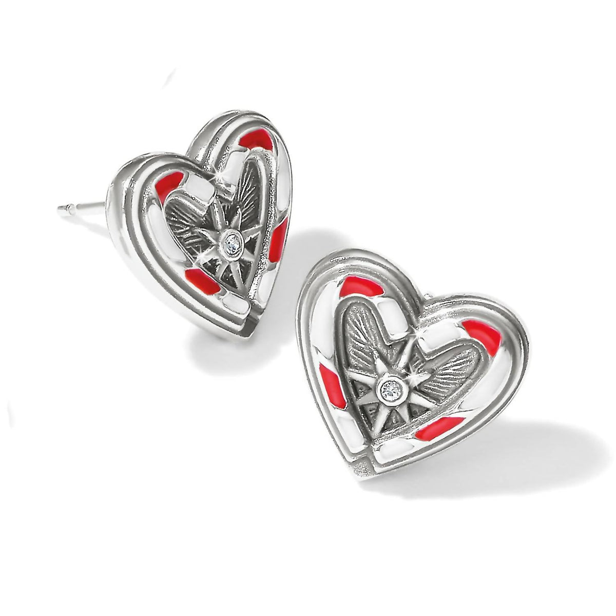 These Women's Candy Cane Sweetheart Post Earrings in Silver-Multi by Brighton: These festive earrings feature a whimsical silver-multi color scheme adorned with a charming enamel finish. The silver-plated base adds a touch of sophistication while the simple post and flat disc back offer easy wearability. A perfect accessory to bring some cheer to your seasonal wardrobe.
