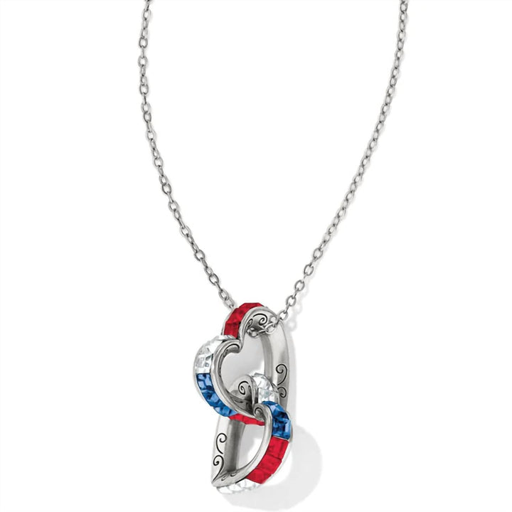 This Spectrum Hearts Long Necklace in Red-White-Blue by Brighton boasts a beautiful blend of colorful crystals. Its elegant design is perfect for adding a pop of color to any outfit, whether worn alone or layered.