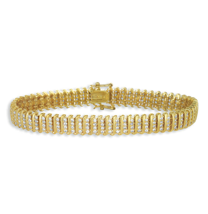Sterling Silver 14K Gold Plated with Clear Cubic Zirconia Wave Bar Link Tennis Bracelet