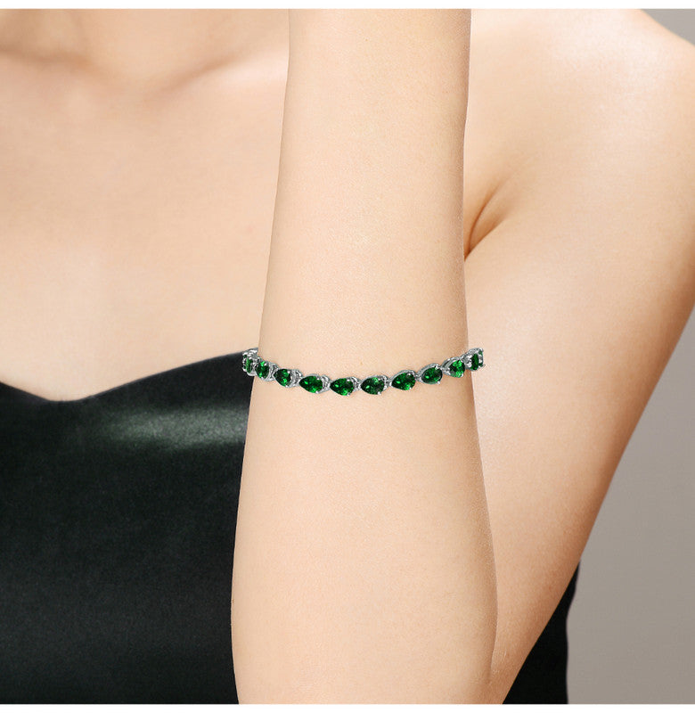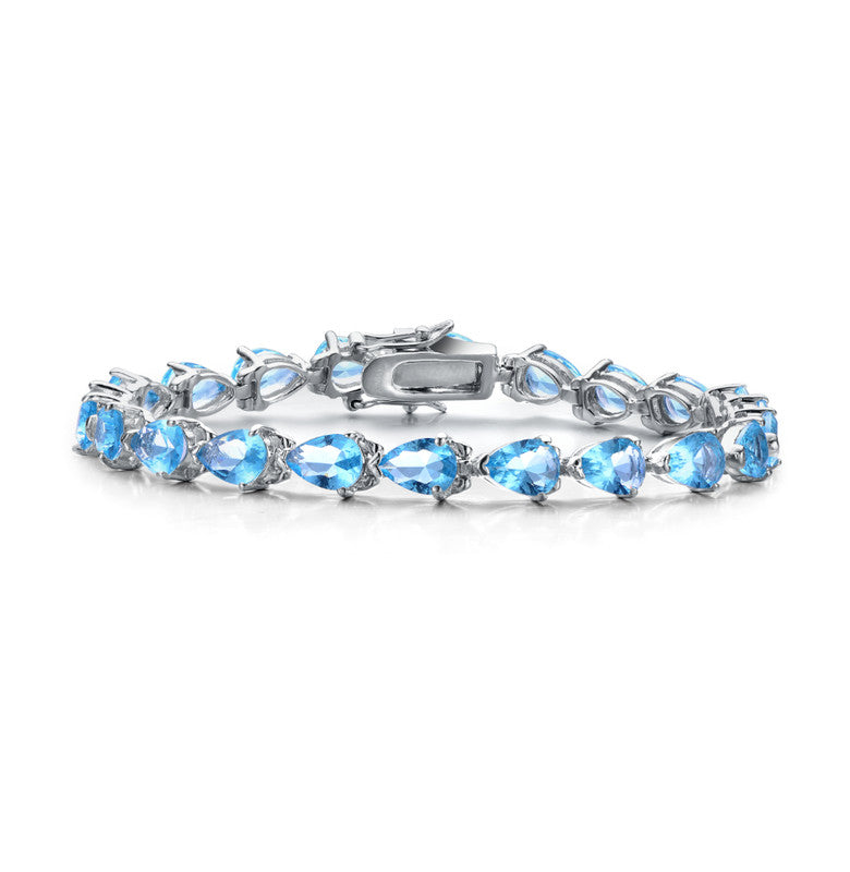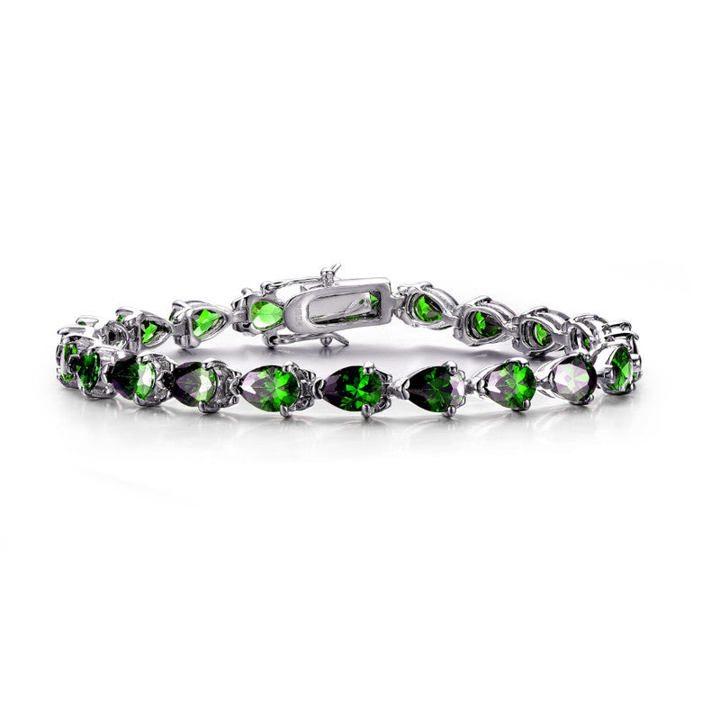 White Gold Plated with Colored Pear Shaped Cubic Zirconia Tennis Bracelet