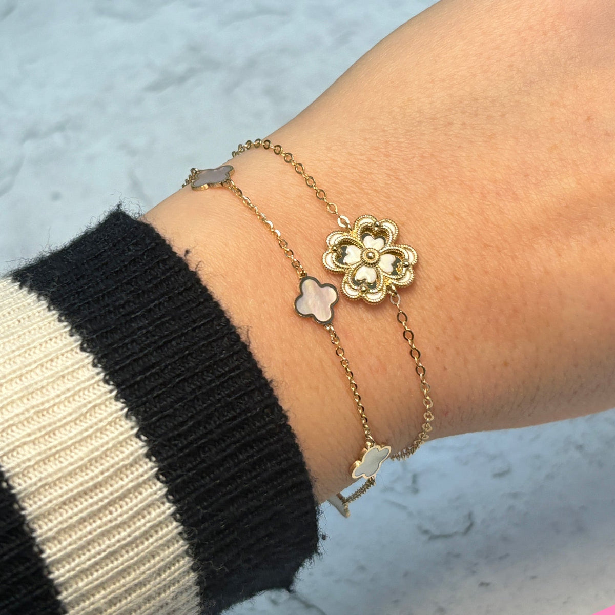 White Enamel Single Clover Bracelet