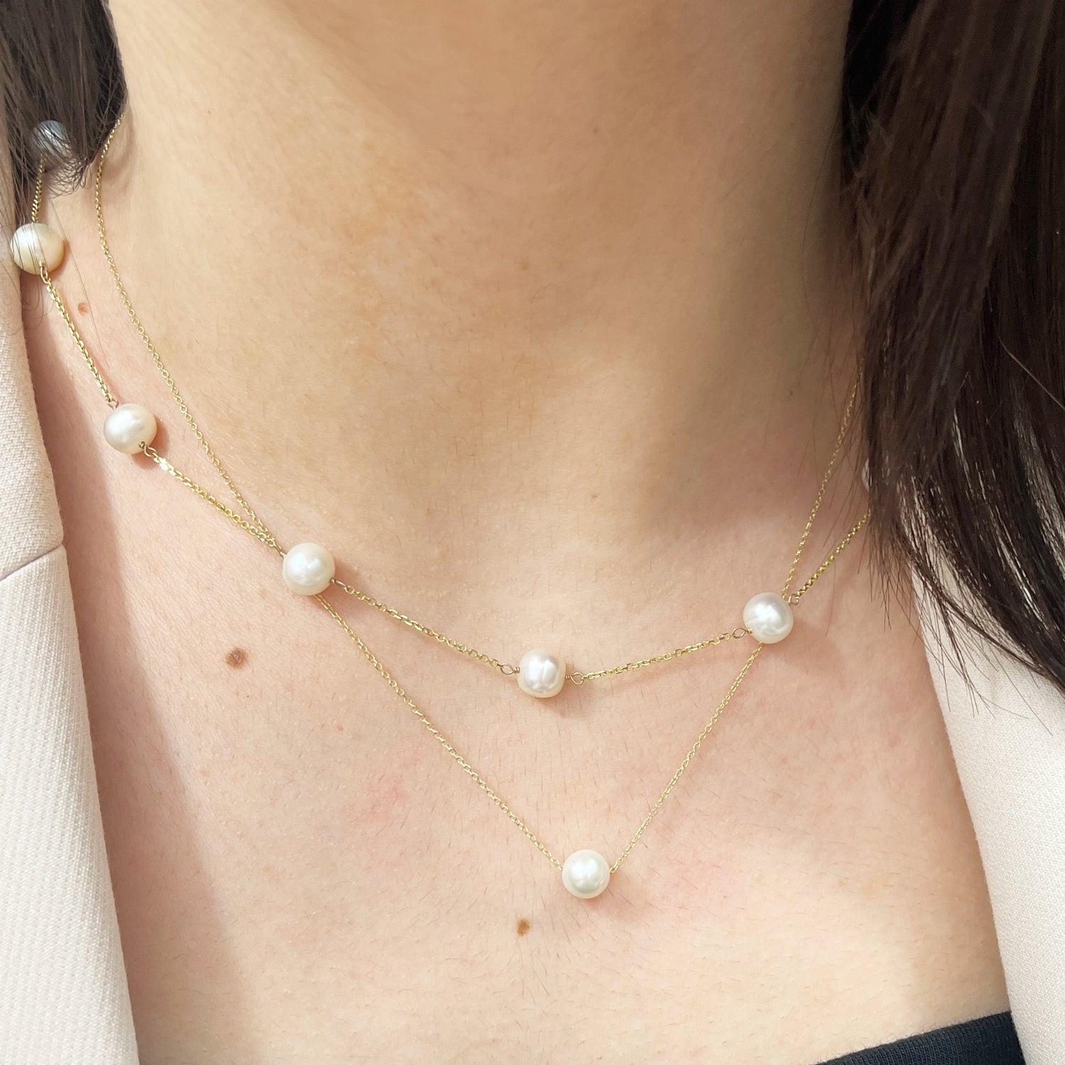 Handcrafted in 14K Gold with a Round Pearl (7mm). Adjustable chain length: 16'-18'. Rectangle Lobster Clasp.