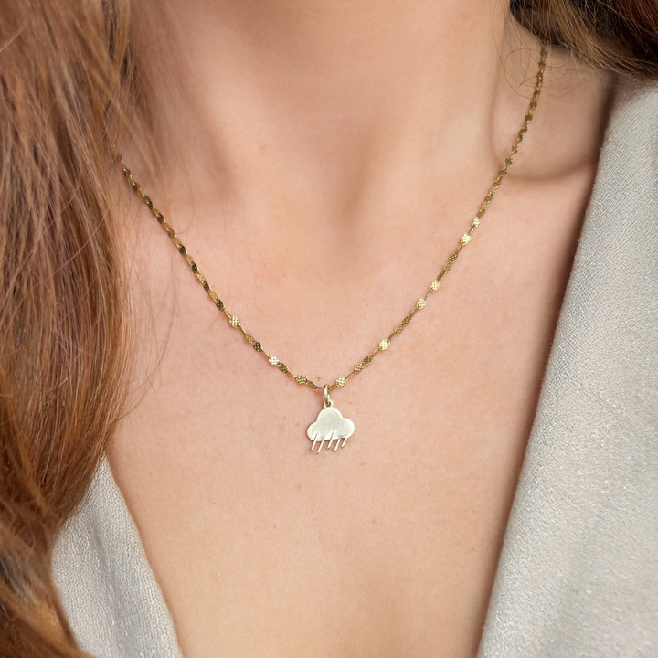14K yellow gold. Rain storm charm measures 10mm (0.40 inches). This piece is identical on both sides.