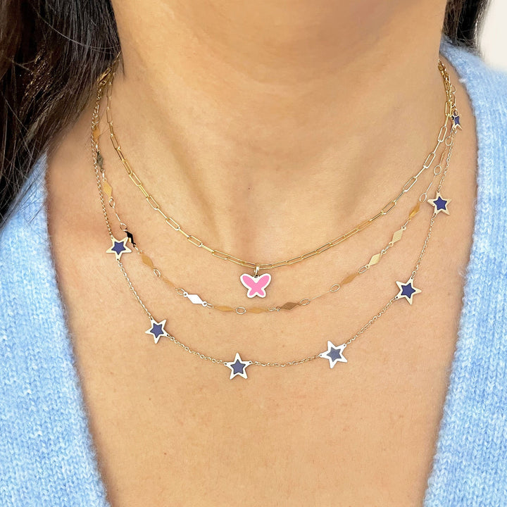 This Bubblegum Pink Butterfly Charm 11mm by The Lovery is a playful and vibrant addition to any chain or bracelet. Crafted in 14K yellow gold, this delicate butterfly-shaped charm features a bubblegum pink stone. Identical on both sides, it offers versatility for any occasion.