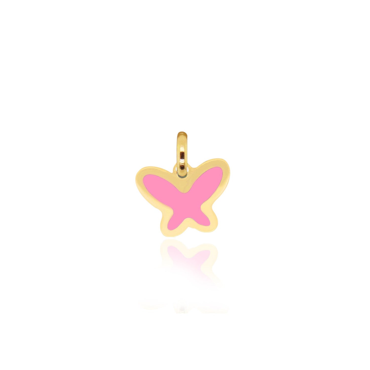 Crafted in 14K yellow gold with bubblegum pink stone. Butterfly shape, 11mm.