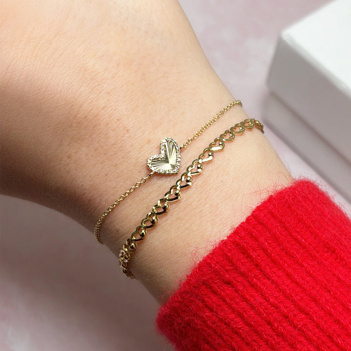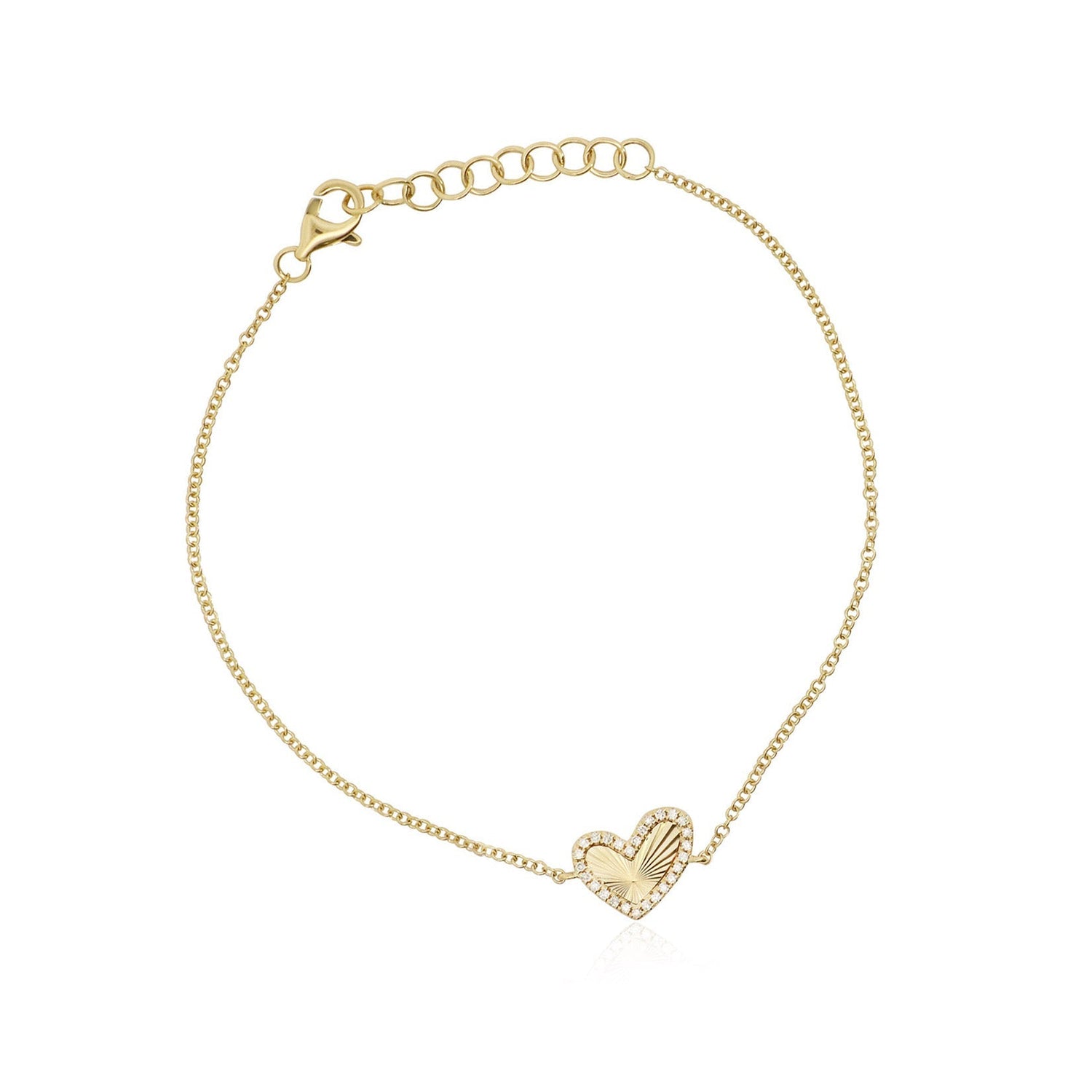 Asymmetrical Fluted Gold Diamond Heart Bracelet