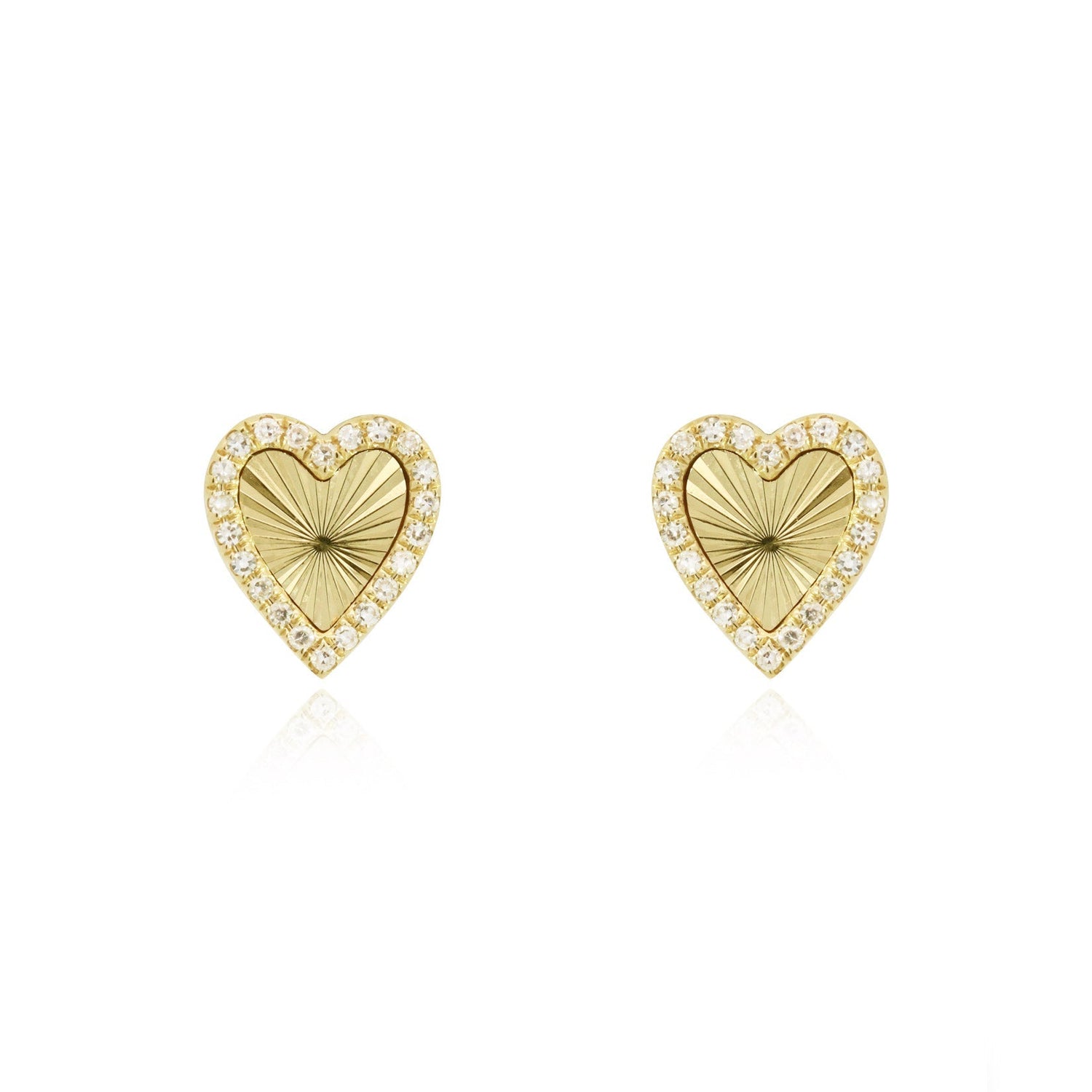 Skinny Fluted Gold Diamond Heart Stud Earring