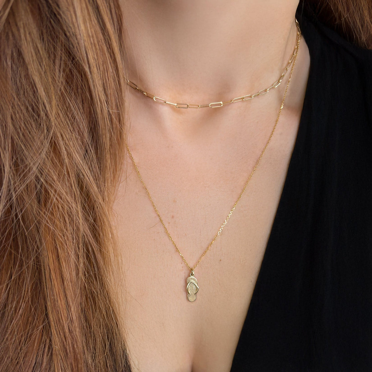This Mini Gold Flip Flop Charm by The Lovery is the perfect accessory to add some playful personality to your jewelry collection. Featuring a delightful flip flop motif, this charm symbolizes carefree days and fun-filled vacations. Its petite size makes it ideal for layering, and it can be added to bracelets or necklaces for a touch of whimsy.
