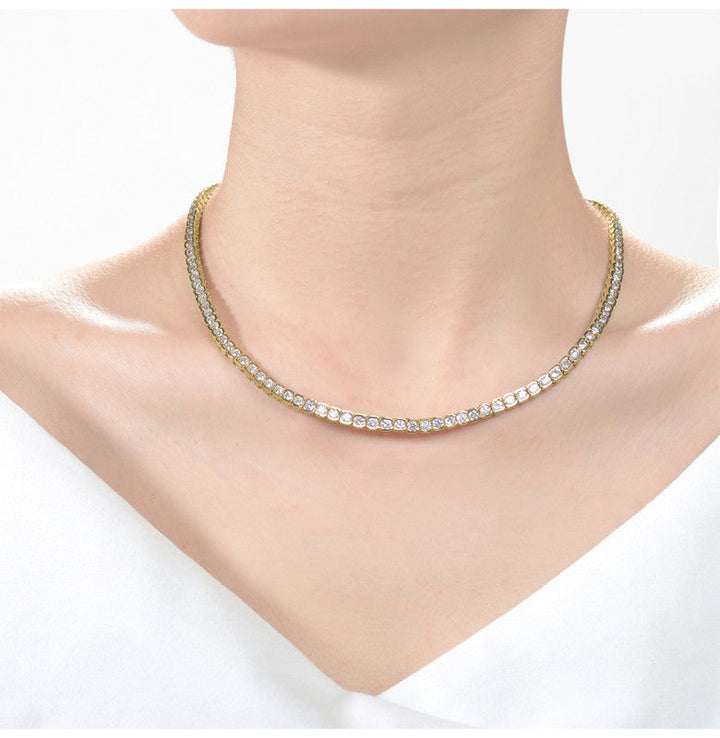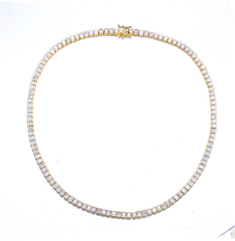Sterling Silver 14K Gold Plated With Cubic Zirconia Classic Tennis Chain Anniversary Necklace