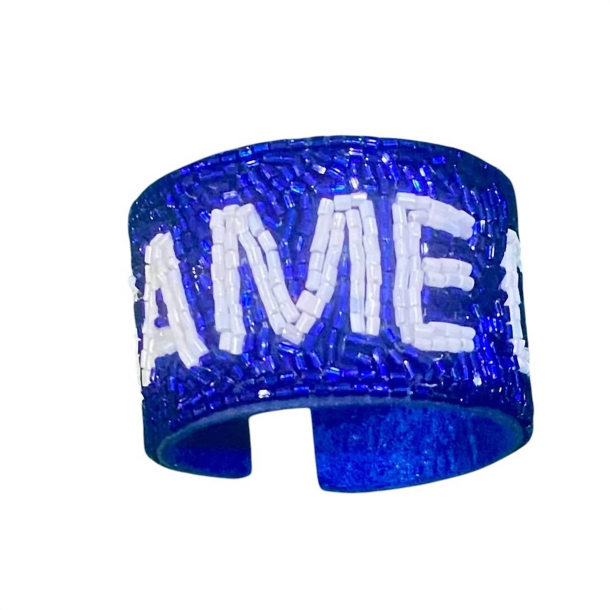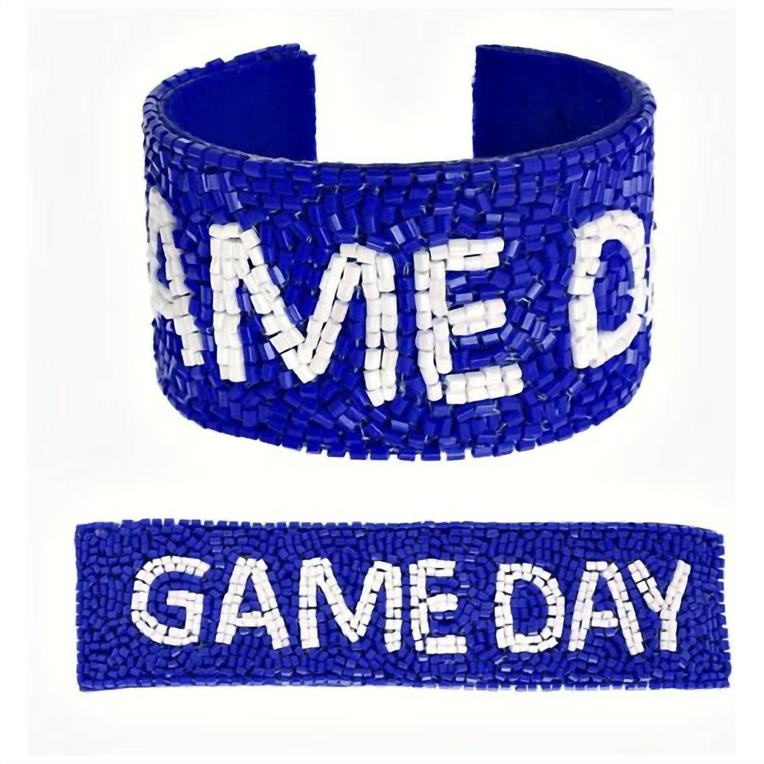 This Game Day Beaded Cuff Bracelet in Blue/White by Sophia Collection is a playful and bold bracelet that features vibrant blue and white beads. Measuring 6.75 inches in length with a 1.75-inch width, this cuff bracelet is perfect for showing off your team spirit or adding a fun pop of color to your look.