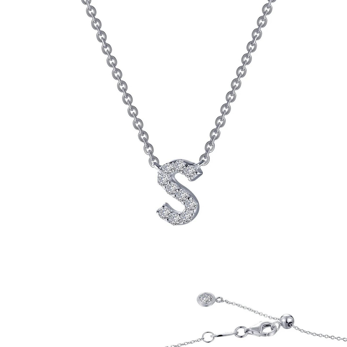 This Letter S Pendant Necklace in Silver by Lafonn is a personalized and elegant piece, featuring the letter 'S' set with Lafonn's signature Lassaire simulated diamonds. The dainty silver necklace is perfect for everyday wear and can be layered with other pieces for a customized look. This necklace is ideal for those who want to add a personal touch to their jewelry collection.