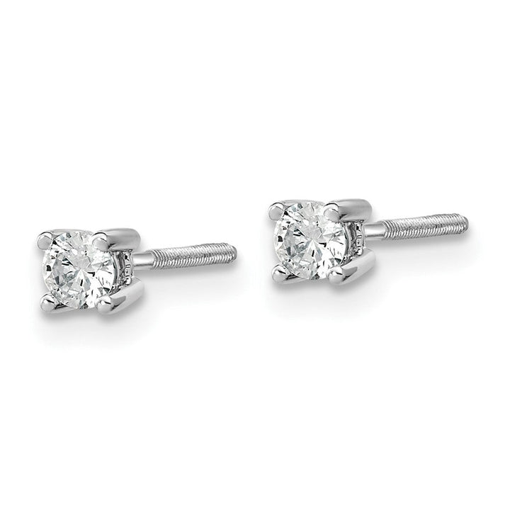 Crafted in 14K white gold with 0.2 carats of lab-grown diamonds (VS/SI clarity, G-H color). Earring closure: Screw back. Dimensions: 3.25 mm x 3.25 mm.