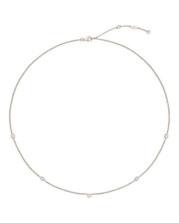 This Women's Cascade 5-Stone Necklace in White Gold by Memoire features a series of five stunning diamonds set in 18K white gold, creating a cascade of sparkle and sophistication. This elegant necklace is perfect for any occasion, adding a timeless touch to your jewelry collection. The 18-inch length ensures it sits gracefully at the neckline, making it ideal for both formal and casual wear.
