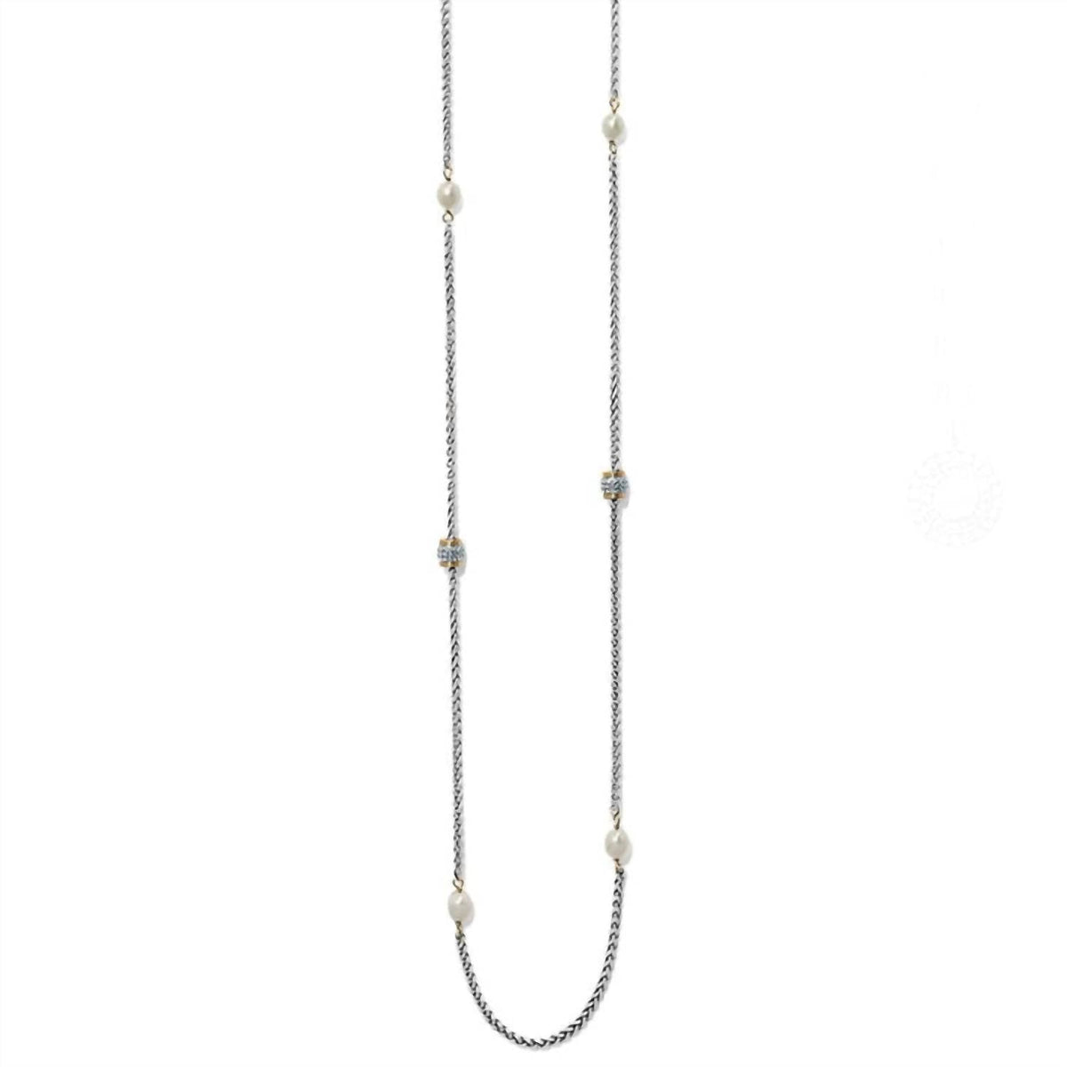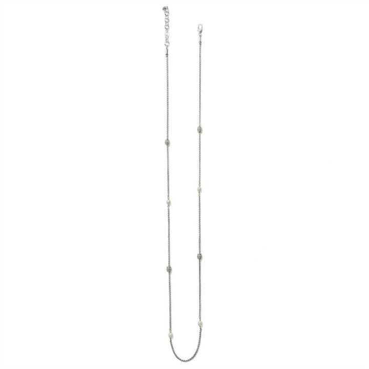 This Women's Meridian Petite Pearl Two-Tone Necklace in Silver-Pearl by Brighton features freshwater pearl beads and fine quality crystals in a sophisticated two-tone finish. Perfect for any occasion, this necklace can be worn alone for understated elegance or layered for a more dramatic effect.