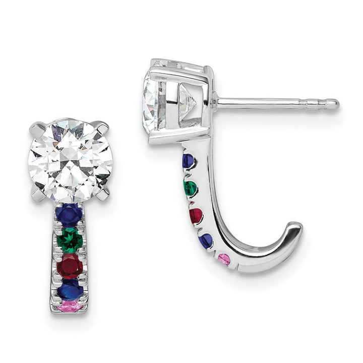 14k White Gold 2 CT Lab Grown Diamond And Multi Gemstone Stud Earrings