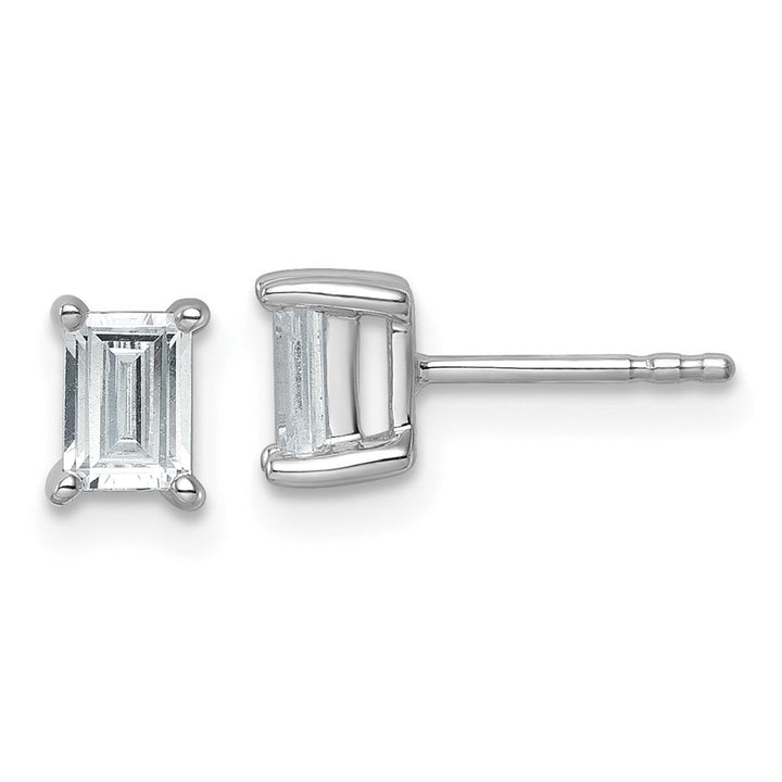 14k white gold, lab-grown diamonds, emerald cut, 1 carat total weight, post back closure, friction back.